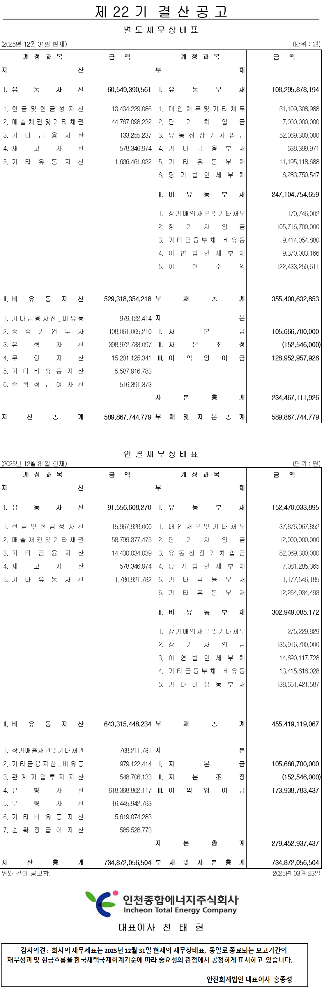 2024년도 인천종합에너지(주) 공사비부담금 관...